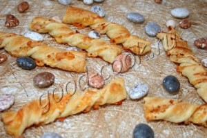 Очень вкусные палочки. Тесто мягкое внутри и хрустяще-слоящееся снаружи. Аромат - копчёный, а вкус - сырно-солёный.В качестве мясной составляющей можно использовать любые копчёные продукты. При желан…