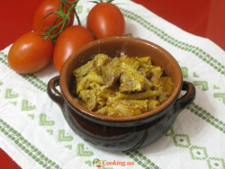 Ингредиенты: - 500г телятины - 150г фигурных макарон - 250г томатов в собственном соку - 1 луковица - 2 зубчика чеснока - оливковое масло - 20г сливочного масла - щепотка сушеного тимьяна - щепо…