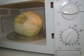 Предлагаю вашему вниманию еще один способ подготовки капустных листьев – при помощи СВЧ-печи. Вырежьте кочерыжку из кочана и сделайте насечки на листьях вокруг полученного отверстия. Так листья …